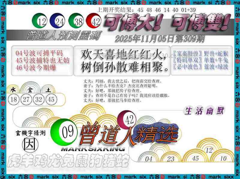 309期:〖合数单双〗合双】开:鼠06准